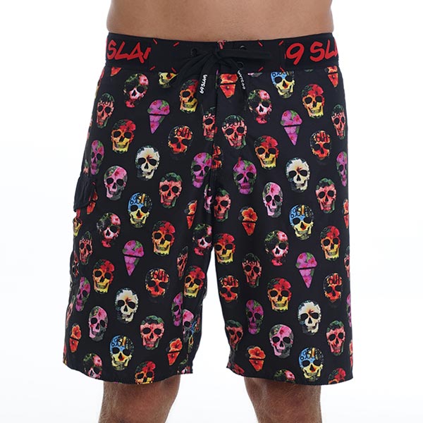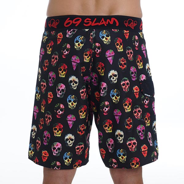 Men Boardshort Long Length Hibiscus Scull Black